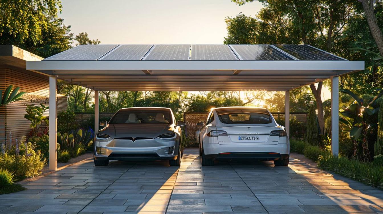 Les principales caractéristiques d’un carport solaire de deux voitures comprennent :